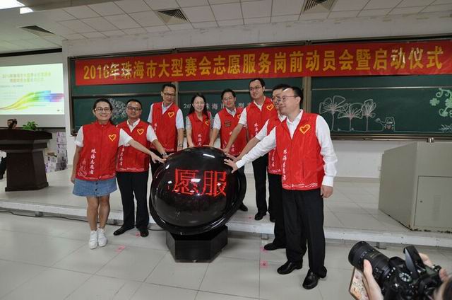 9月24日上午,2016年珠海市大型赛会志愿服务岗前动员会暨启动仪式在北京师范大学珠海分校举行。珠海市政府副市长龙广艳,市委副秘书长、市文明办主任钟国胜,市会展局局长、市会展集团董事长周作德出席活动并参与启动仪式。此外,来自中山大学珠海校区、暨南大学珠海校区、北京师范大学珠海分校、北京理工大学珠海学院等多所高校的500余名赛会志愿者代表参加活动。