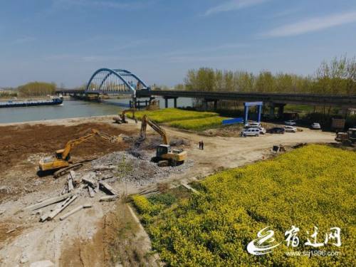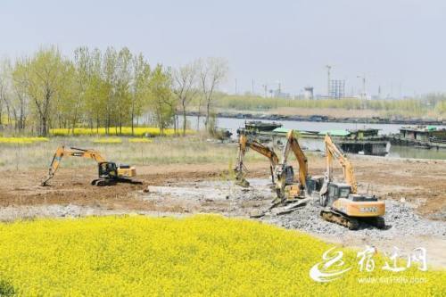 4月6日,工程机械在宿迁市中运河宿迁闸至刘老涧闸段整治工程施工现场施工。据了解,该工程概算总投资6600万元,宿城区境内拆分概算投资1866万元,宿城区境内工程主要位于洋北街道,工程建设任务主要是通过对中运河宿迁闸至刘老涧闸段堤防除险加固,消除工程安全隐患。主要建设内容有:堤防整治1.85千米,岸坡防护2.15千米,新建防汛道路2.69千米。工程计划于2021年12月31日前完工。